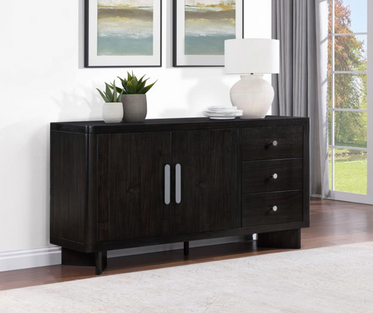 Madeira Collection 2-Door Solid Wood Dining Sideboard, Black