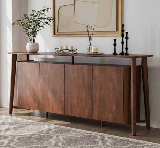 Madeira Collection 4-Door Solid Wood Dining Sideboard, Rich Walnut