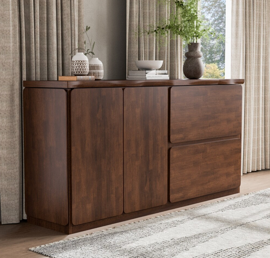 Madeira Collection 2-Door Solid Wood Dining Sideboard, Rich Walnut