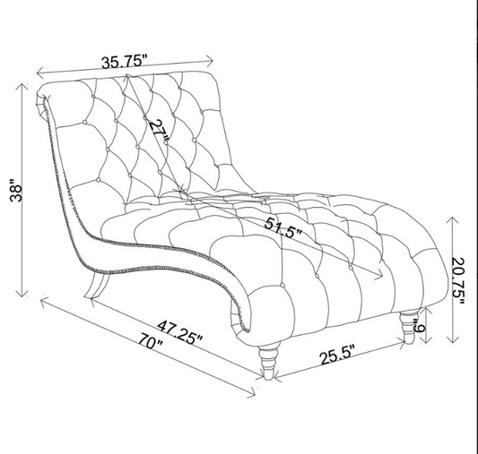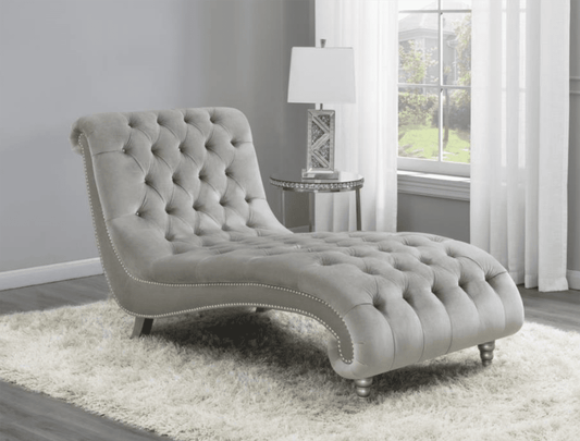 Ailah Light Grey Velvet Studded Chaise Lounge