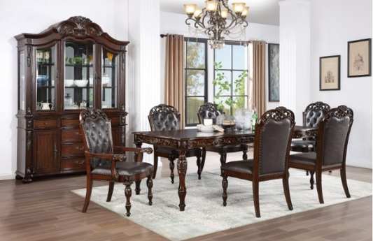 Lombardy 9-Piece Traditional Walnut Dining Set with Leatherette Chairs