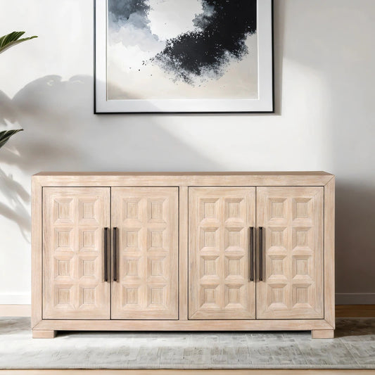 Hatton Cross 4-Door Modern Cabinet with Coffered Panels, Tawny