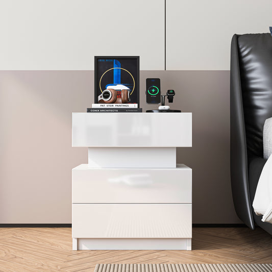 Westpark 2-Drawer Nightstand with LED Lighting & USB Charging – Black