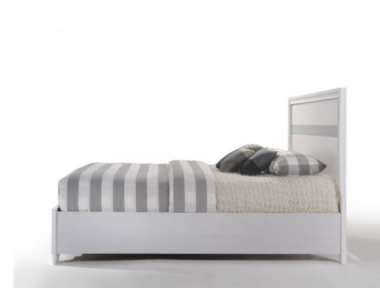 Barzini Modern White Velvet King Bed with Silver Stud Trim & Chrome Feet