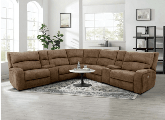 Theola Contemporary Clay Brown Top Grain Leather Power Sectional with Chaise