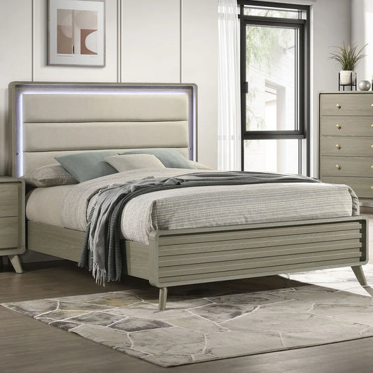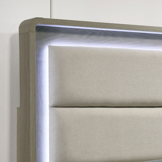 Lorient Queen Upholstered LED Wingback Bed – Ivory & Camel