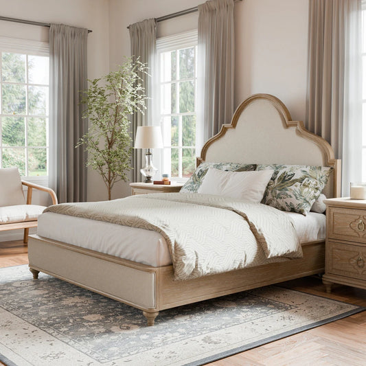 Trenton 54" Rustic Cream & Bouclé Queen Bed
