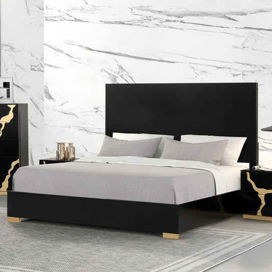 Everly Black & Silver Victorian Metal Platform Bed – Queen