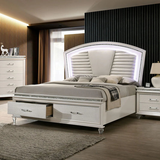 Lunara 2-Drawer Ivory Bouclé Upholstered Queen Platform Bed