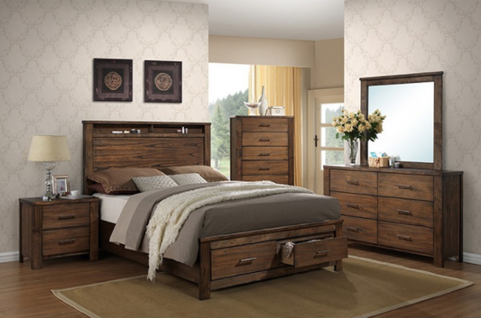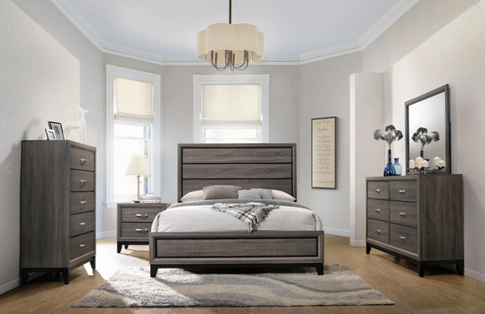 Alyson Transitional Bedroom Collection in Distressed White & Walnut - Queen