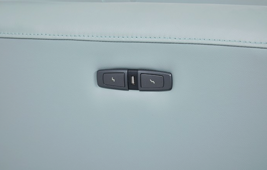 Theola Contemporary Pale Blue Top Grain Leather Power Sectional with Chaise
