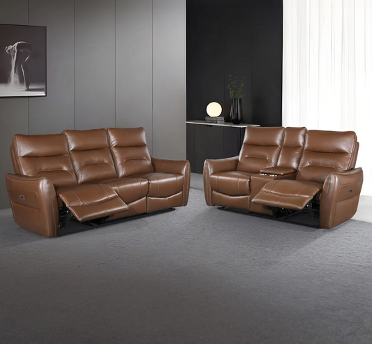 Manual and power reclining sofas designed for modern living. Choose from a wide selection of leather and fabric options, available in both standalone and full living room sets. Each piece is crafted for comfort and built to last—perfect for laid-back evenings or home theater setups.