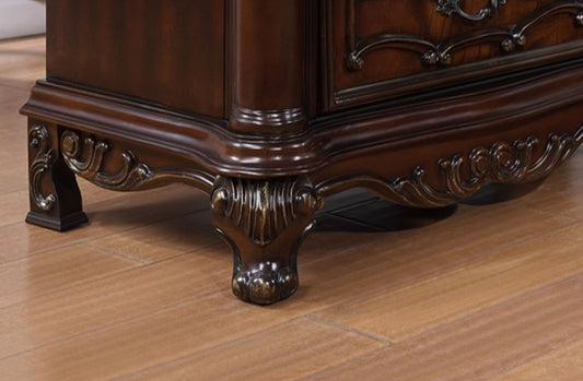 The San Rosae collection exudes traditional elegance with ornate moldings adorning every corner and post. Featuring a variety of bed versions and matching dining sets, it offers French-inspired sophistication for any home.