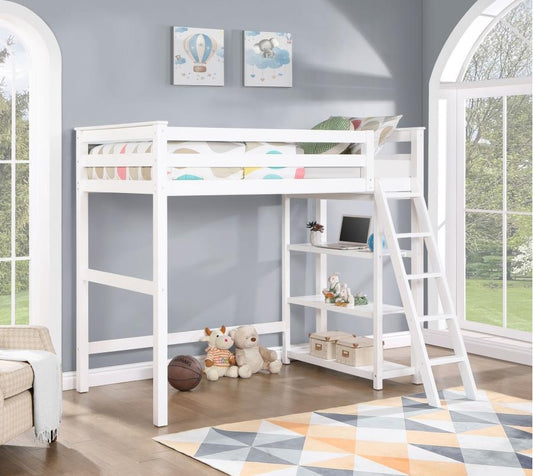 Rachel Twin over Twin Bunk Bed with 4 Drawers and 3 Shelves-White