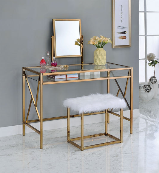 Lismore II Gold Finish Vanity Set W- Stool - Gold