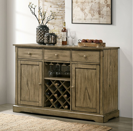 Siobhan Transitional Dining Server with Wine Storage - Rustic Oak