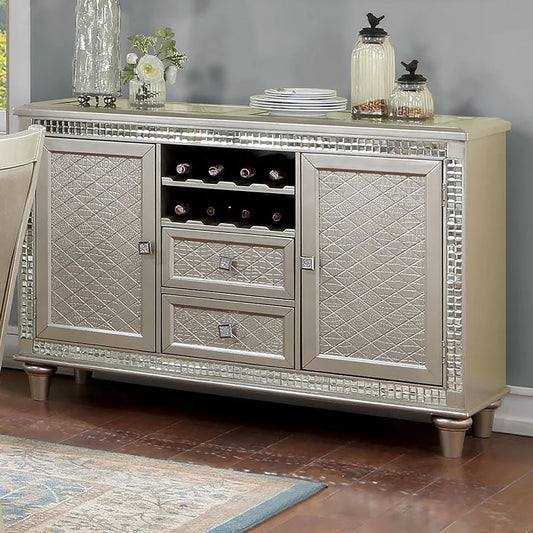Crysalis Silver-Mirrored Finish Cabinet With Wine Storage