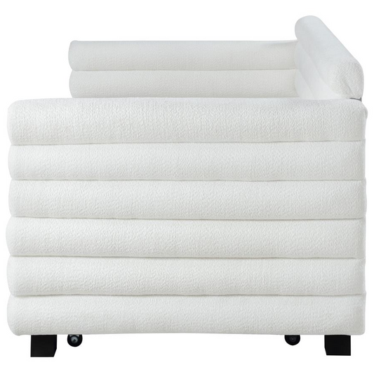 Patricia Boucle Upholstered Twin Day Bed with Trundle White