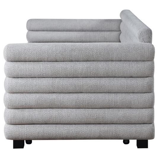 Patricia Boucle Upholstered Twin Day Bed with Trundle, Gray