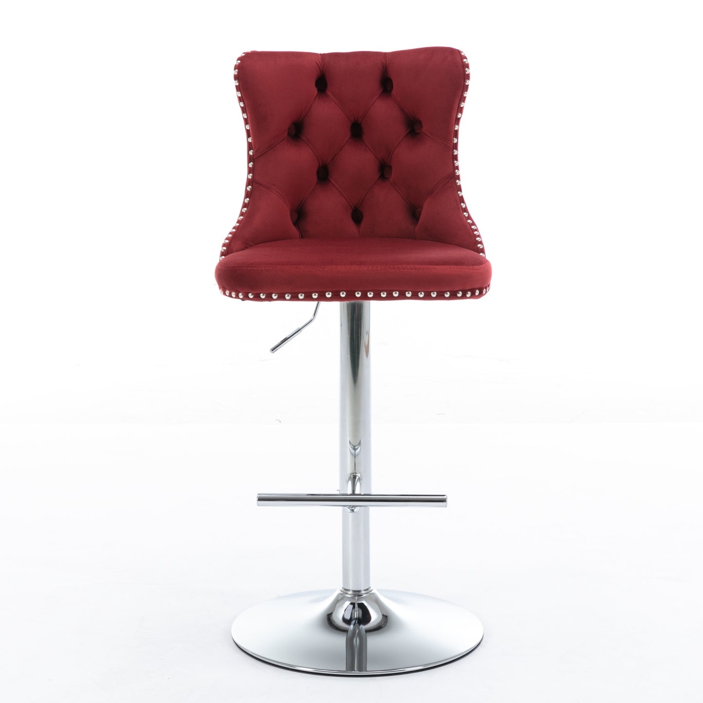 Elevate your dining space with sophisticated style and comfort. Upholstered in luxurious velvet, this burgundy bar stool combines modern design with practical functionality. Perfect for kitchen islands, home bars, or contemporary dining spaces.