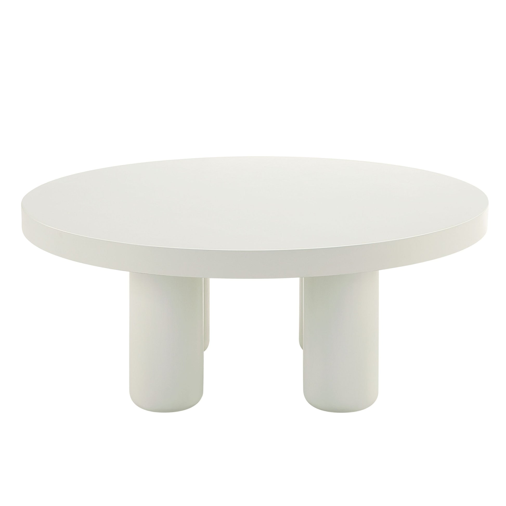 - This round coffee table in a sleek white finish embodies a simple yet stylish modern design, perfect for contemporary living spaces.