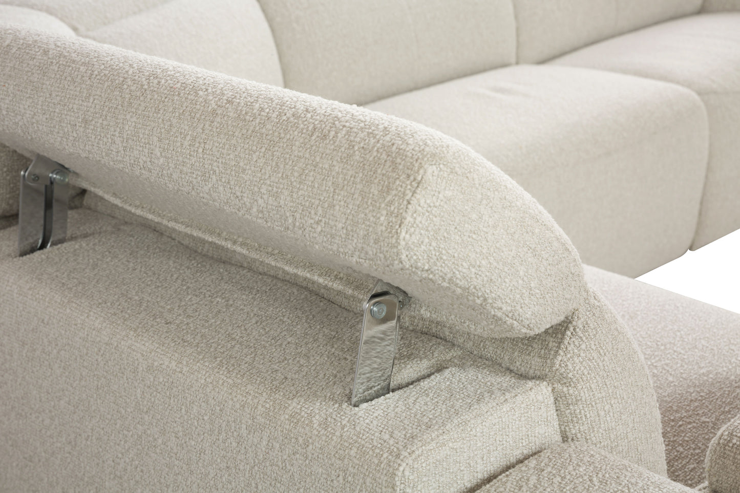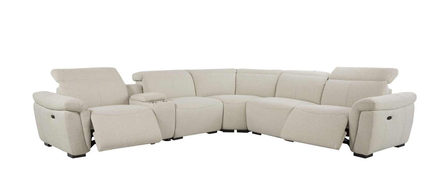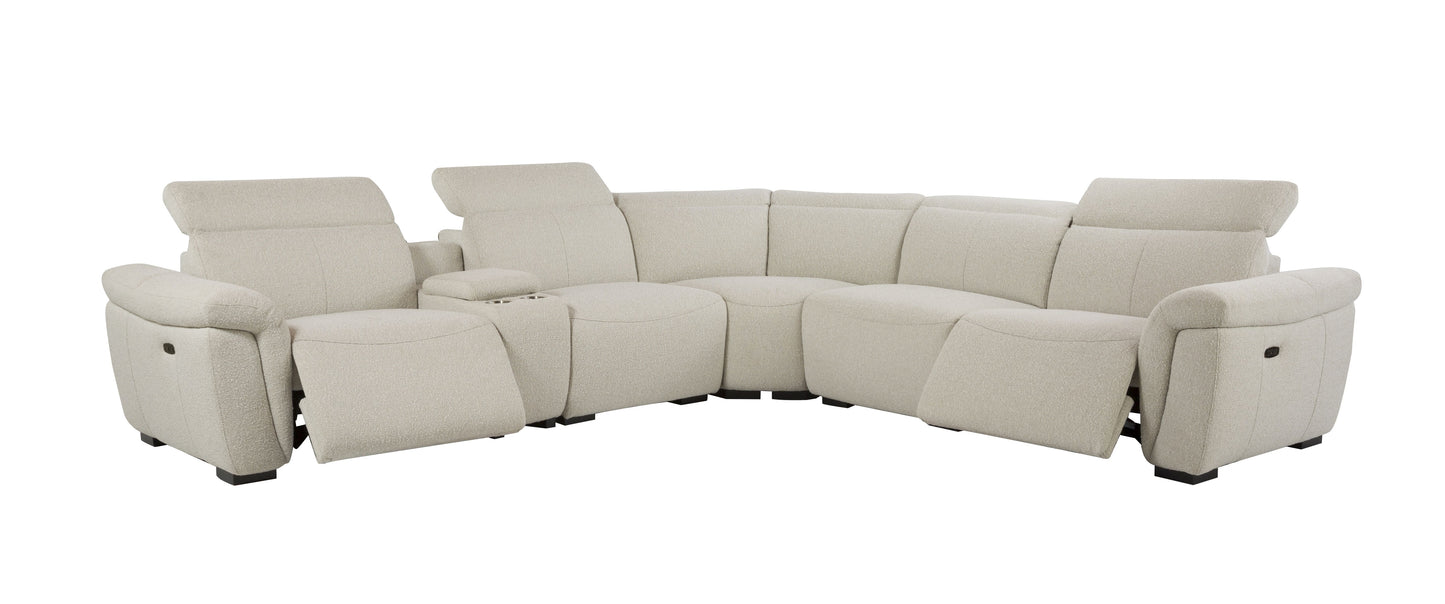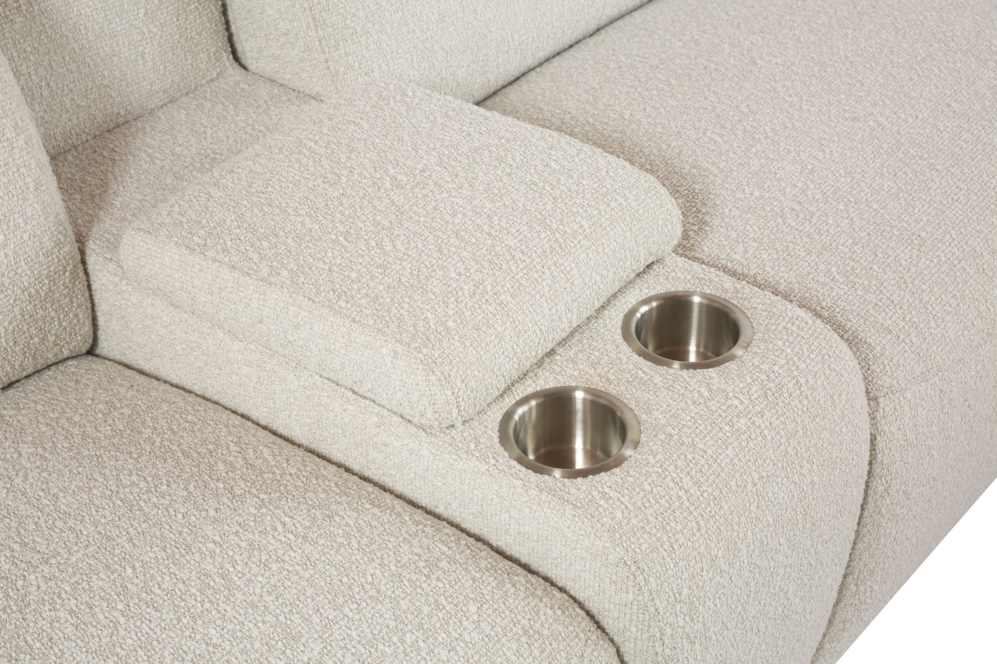 Dayana Beige Boucle Power Recliner Sectional Sofa for 5 People with Cupholder Console & Adjustable Headrest