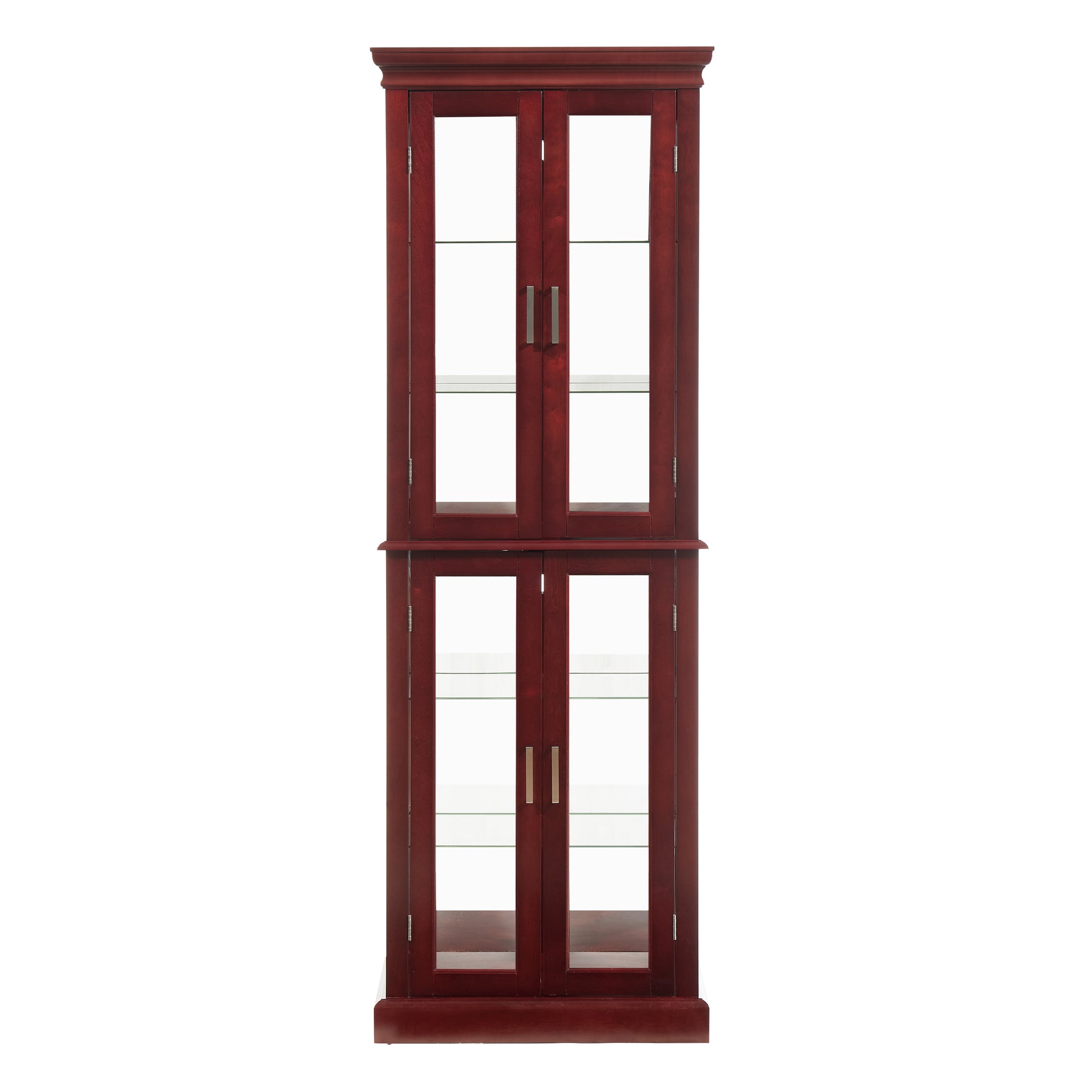 Elegant and functional, the Claudette Curio Cabinet features a rich cherry wood finish, tempered glass shelves, a mirrored back, and built-in lighting to beautifully display your cherished collectibles and décor. Its tall, slender frame and classic design blend seamlessly into dining rooms, living areas, or hallways.