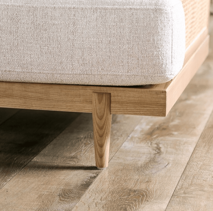 Alesund Mid-Century Modern Sofa with Rattan Accents - Beige & Light Oak