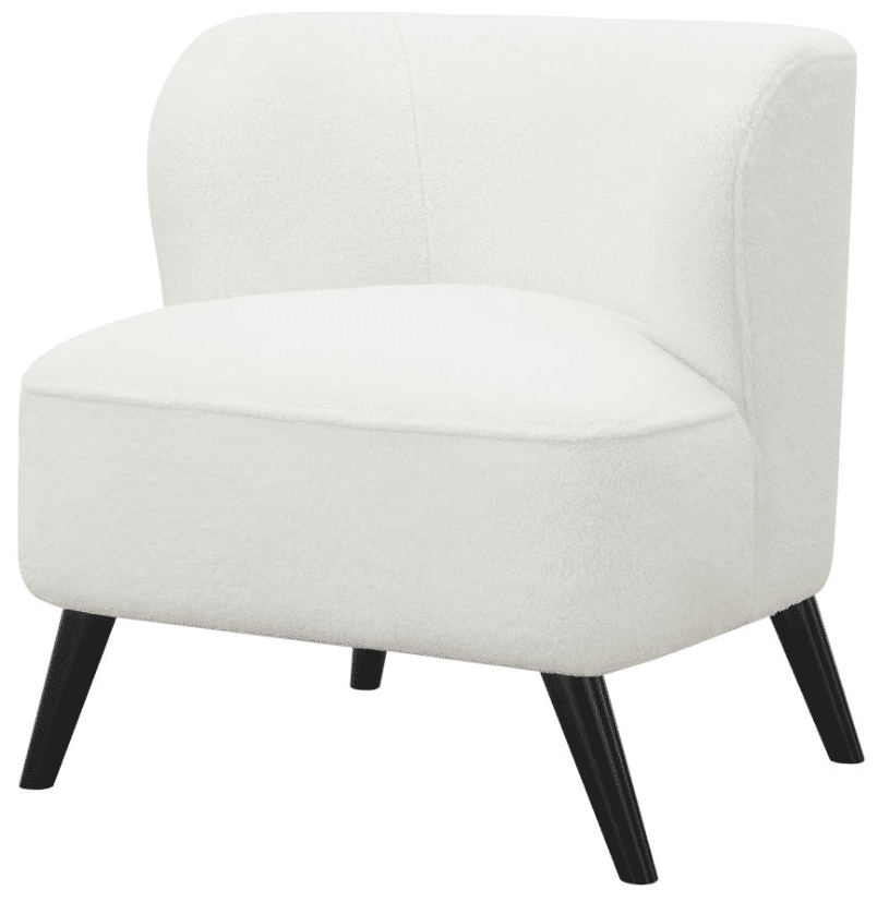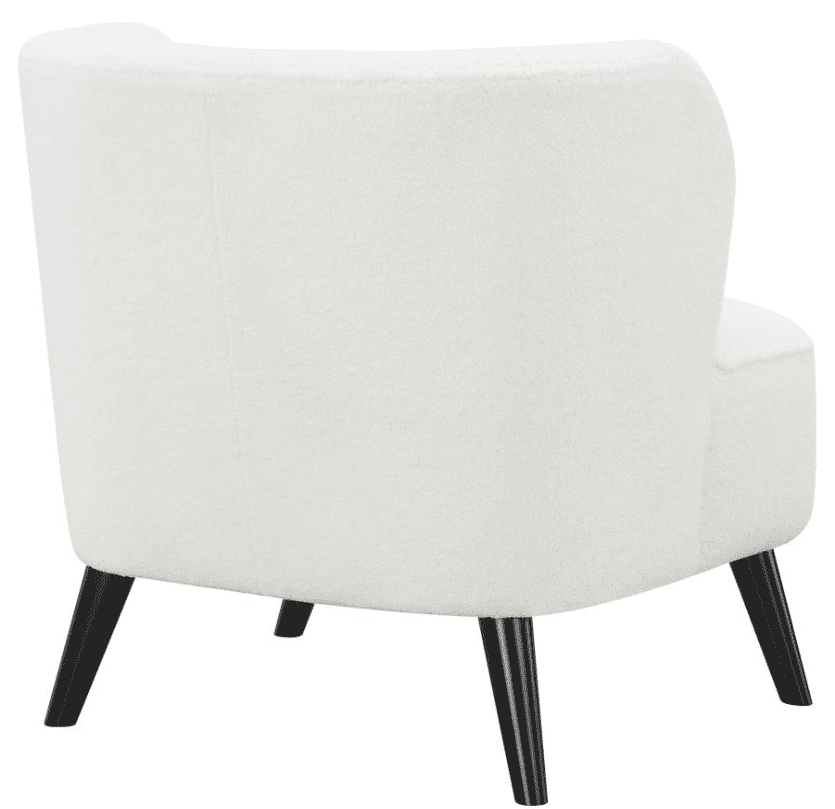 Lend a retro-inspired chic modern aesthetic to seating area and corner nooks with this contemporary accent chair. Designed with a deep barrel style seat with a traditional wingback design, this stylish accent chair works with all kinds of vintage-leaning home decor styles. Adding a supremely soft texture is a natural tone faux sheep skin upholstery. Along the dense tight seat is a thick welt trim that defines the outer edge of the clean, bright fabric. Pushing the mid-century modern vibes are slender flared legs in a bold cappuccino finish.