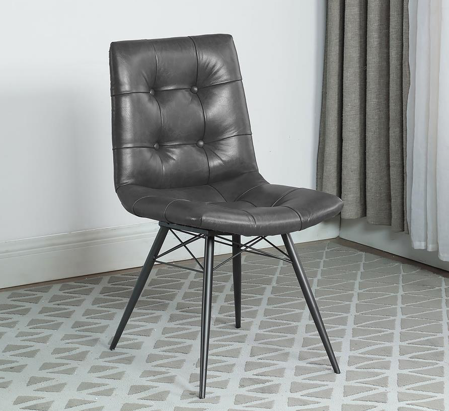 - Faux leather chairs with ergonomic tufted design and armless silhouette