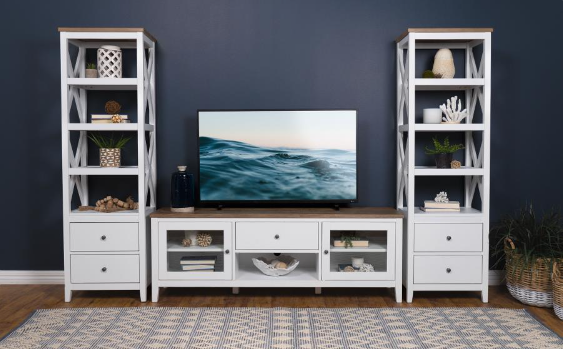 * Enhance TV viewing with rustic farmhouse, coastal, and cottage styles