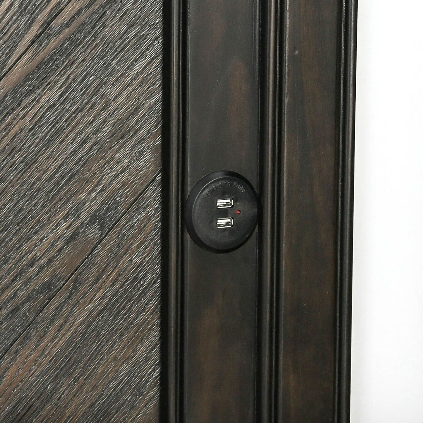 This bedroom set uses V-patterned wood panels to create an elegant display of color and texture.The result is an almost iridescent shine that can give this set a two toned appearance. A tall headboard design allows for more wood to show off its luscious quality and holds a hidden internal USB outlet. The foot board drawers and matching case good faces have the same V-pattern but use a flat strip along with vibrant nickel hardware to separate individual drawers. Simple block feet hold up this sophisticated collection filled with rich wooden hues.