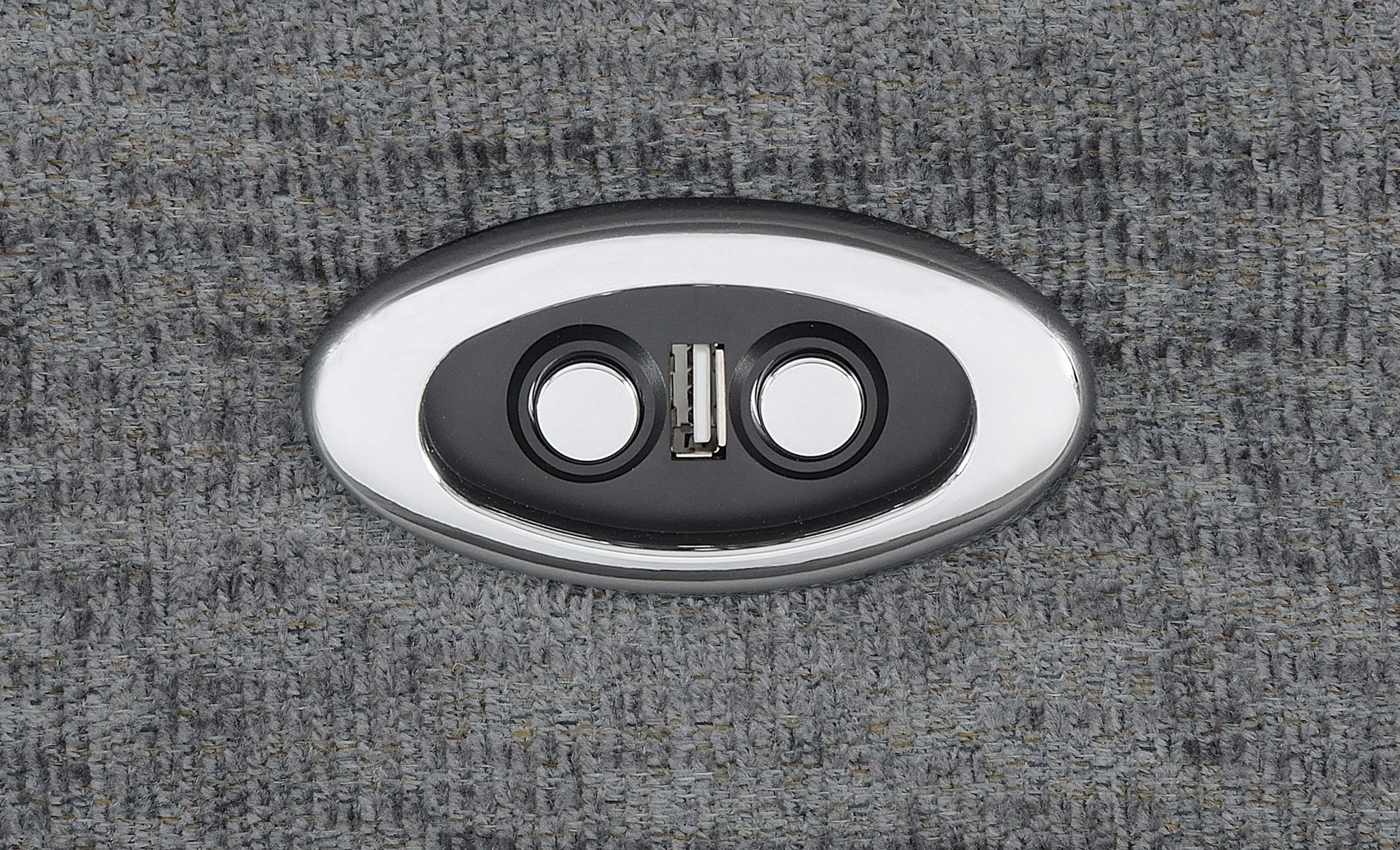 - Six-piece modular power sectional upholstered in charcoal performance chenille