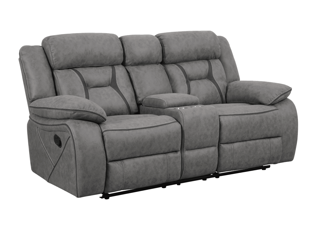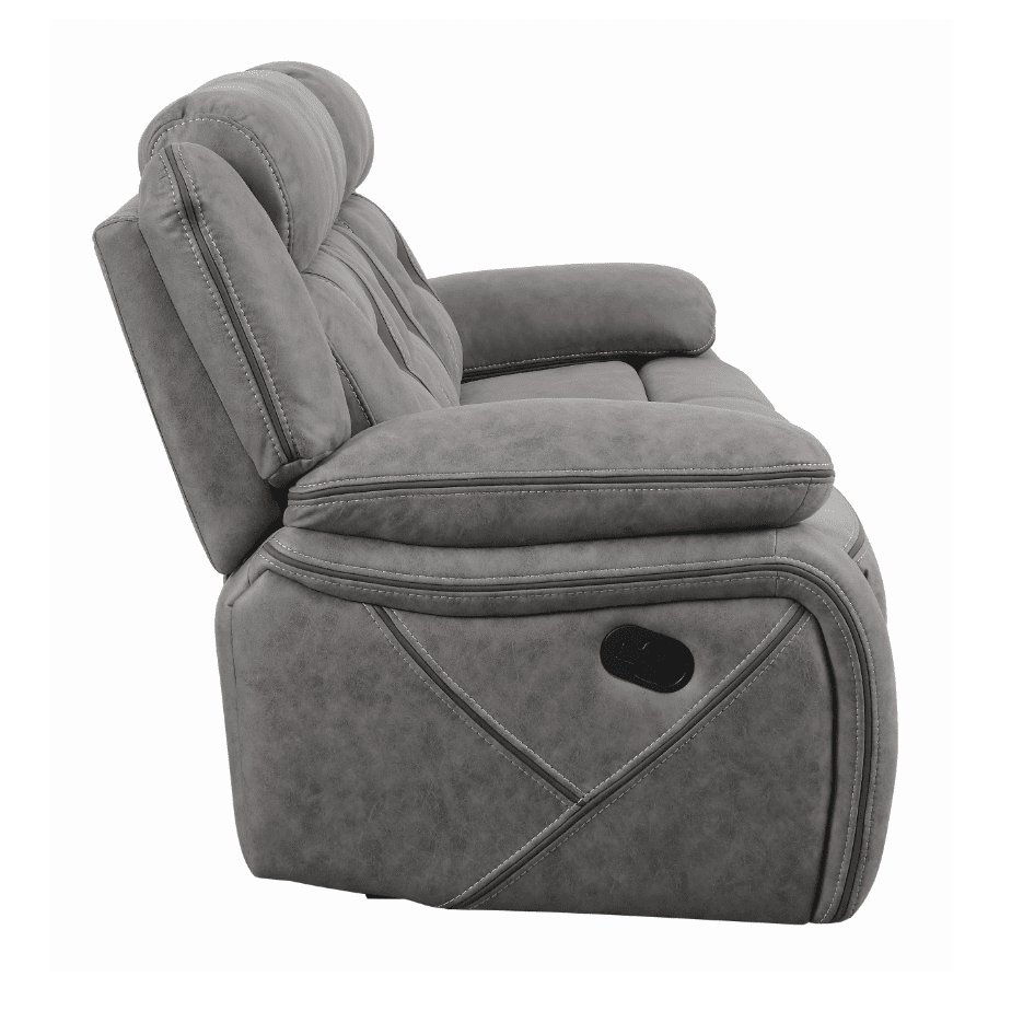 Relax, recline, and revel in the luxurious comfort of this motion sofa. With a chic and modern design, it's ideal for a contemporary living room. Its upholstery boasts a soft, smooth texture that feels lovely against the skin. Its plush seats and thick, padded headrests offer a cozy foundation to rest and relax. Complete with striking, stitched accents, it lends an inviting element of style to any modern home.