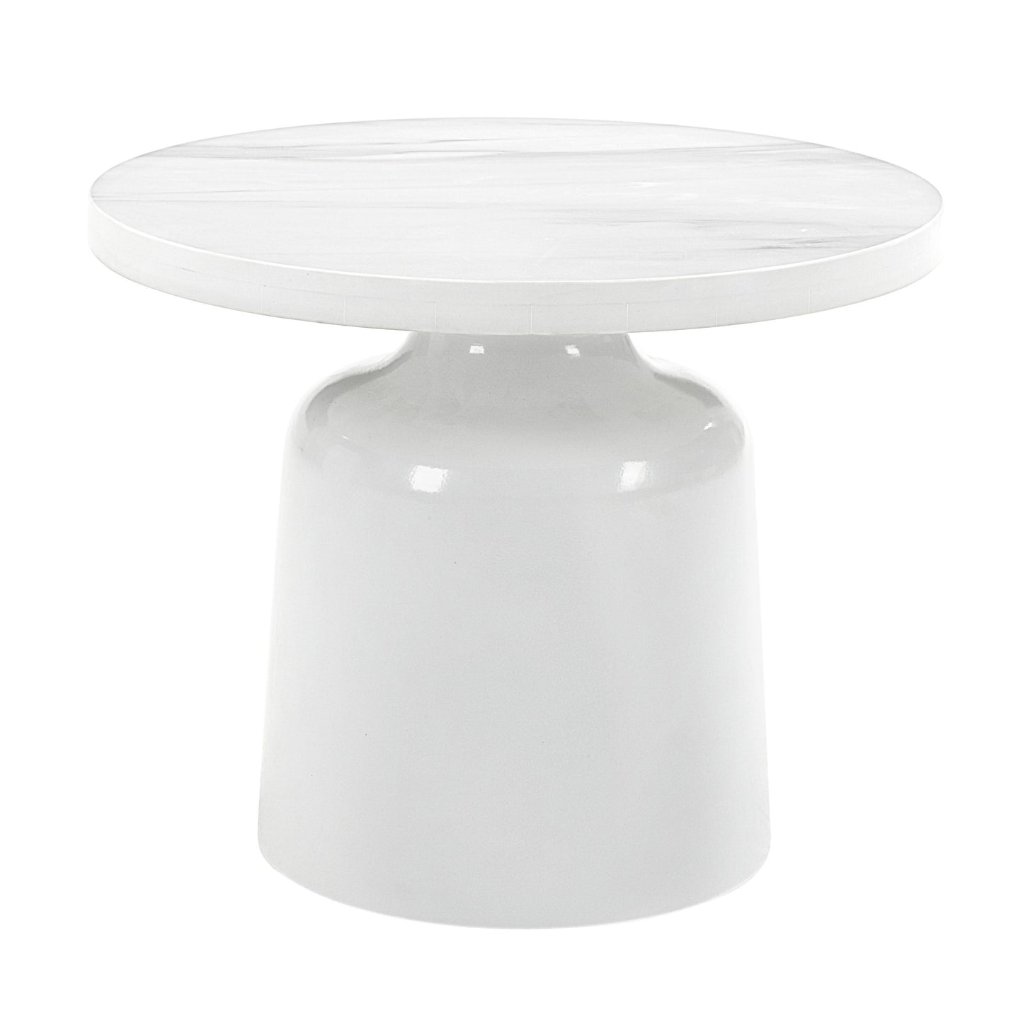 - This round end table features a luxurious engineered marble top and a sleek white high-gloss finish, bringing a sophisticated touch to any living space.