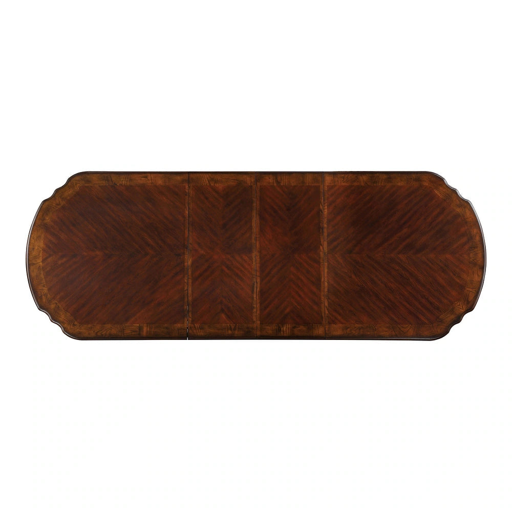 Majestic and easy to adore, this seven-piece dining set coming with a dining table and six side chairs is exquisitely crafted from wood with intricate molding and carving details. Coming in a warm and dark brown color palette ornate floral accents adorn this set from top to bottom. This eco-friendly frame is constructed from rubberwood, a tropical, solid wood taken from rubber plantations. Faux leather upholstery offers an inviting display on each chair, bringing comfort and style that's surely fit for royalty.