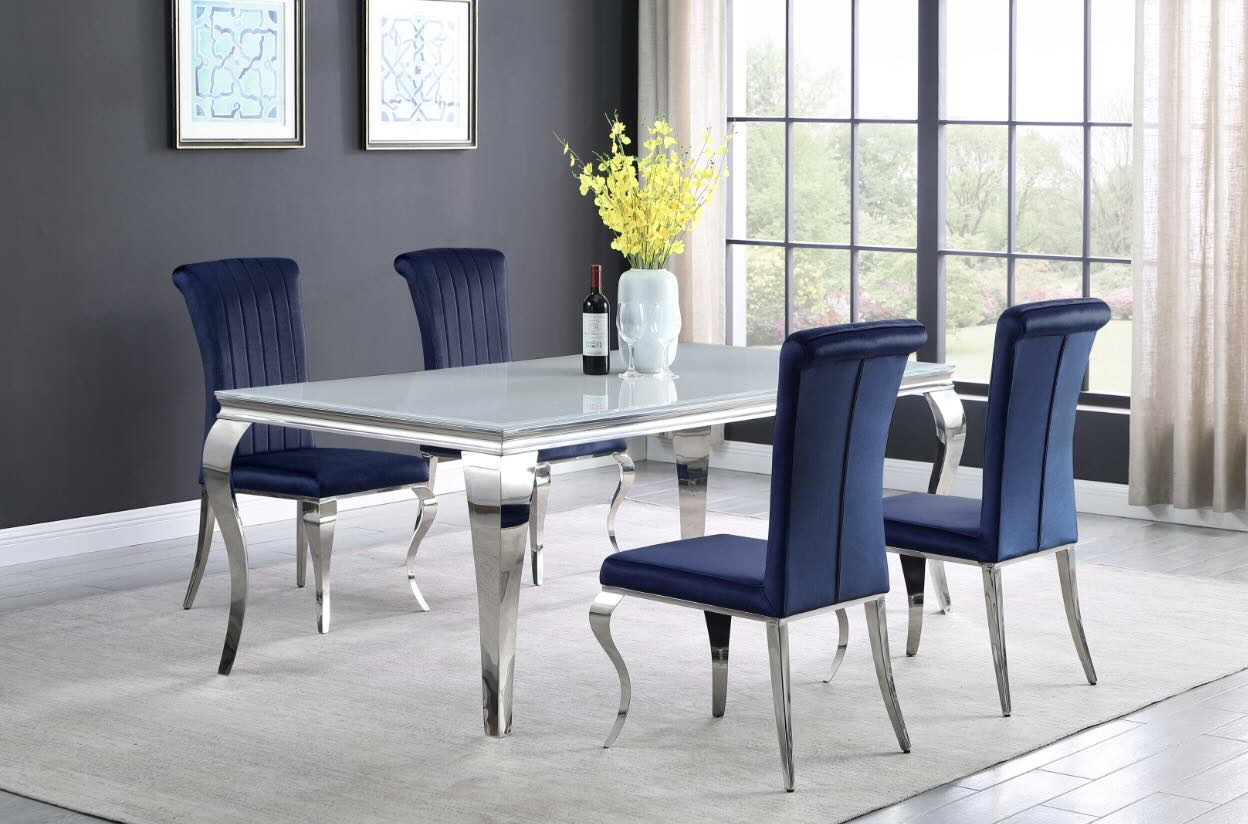 Carone 5-Piece 81" Rectangular Glass Top Dining Set White & Chrome