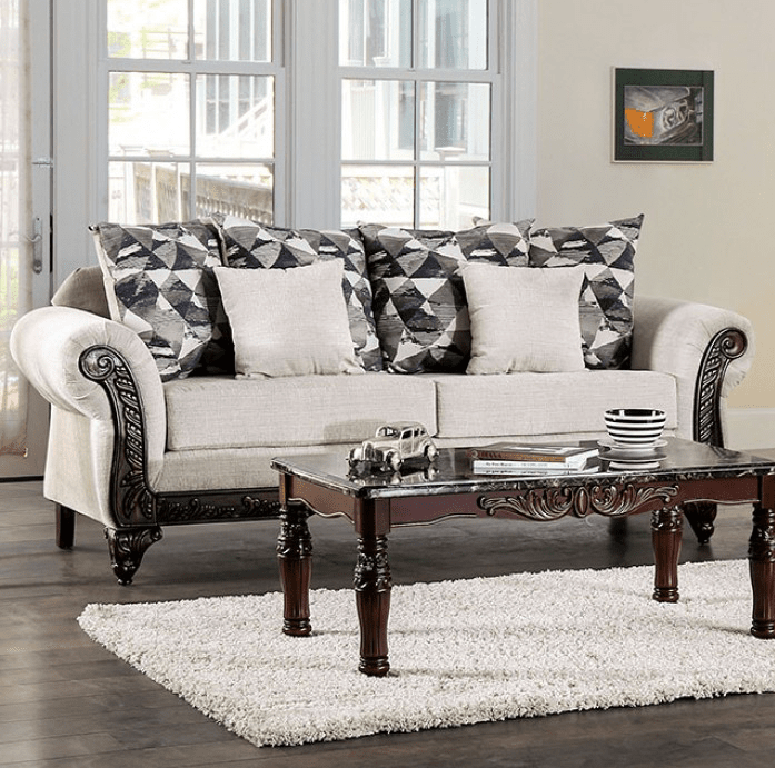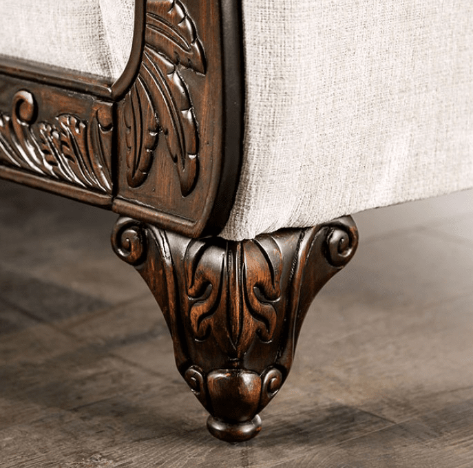 Cassani Traditional Rolled Arm Sofa - Light Gray & Walnut
