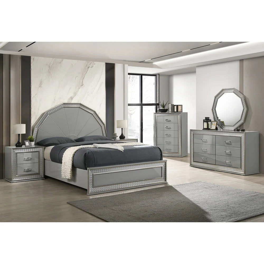 Cassiopeia King Glam Bedroom Collection with LED, Metallic Gray
