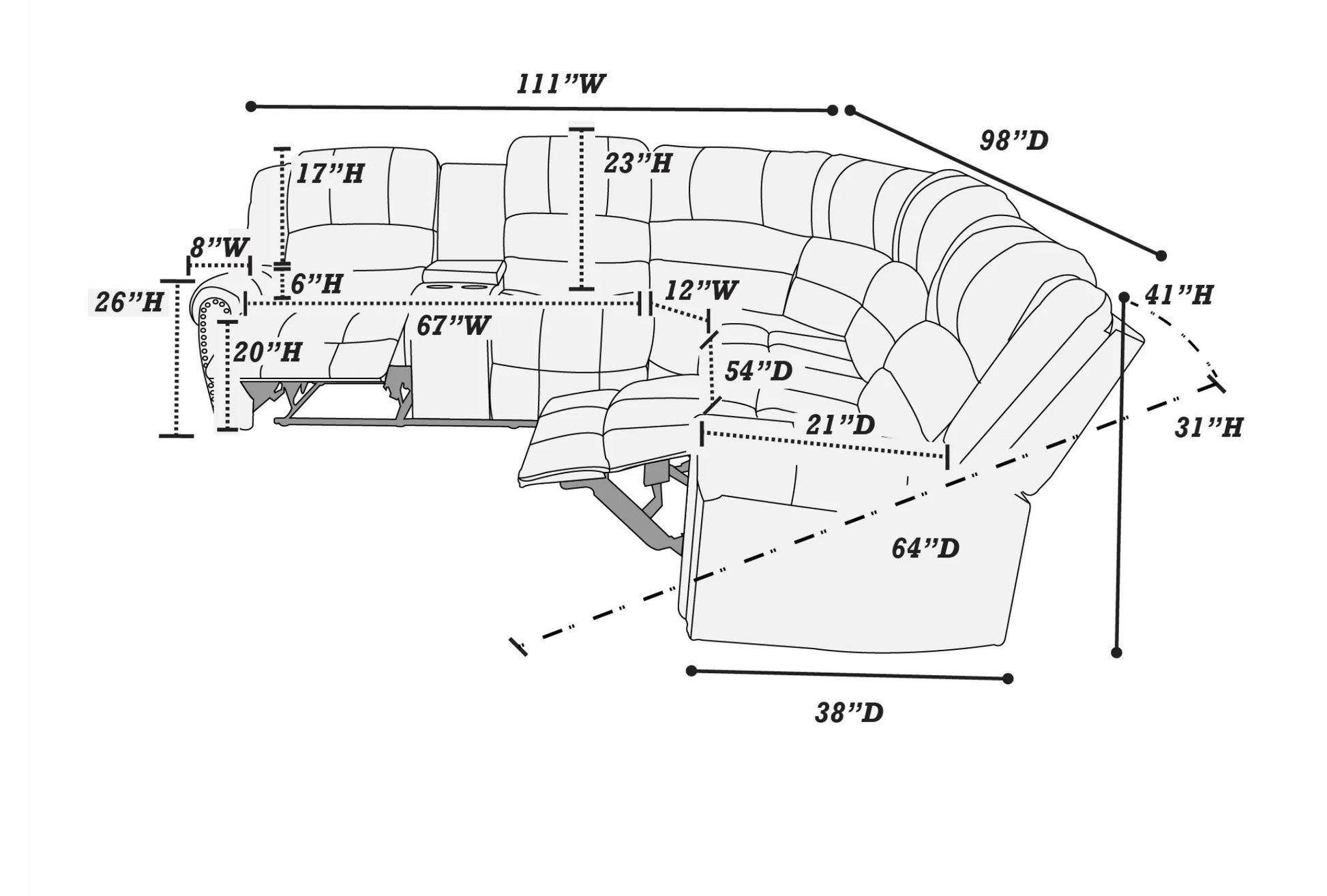 LAF Loveseat w/ Recliner + Console: 66β W x 39β D x 39β H