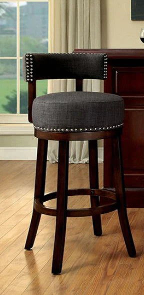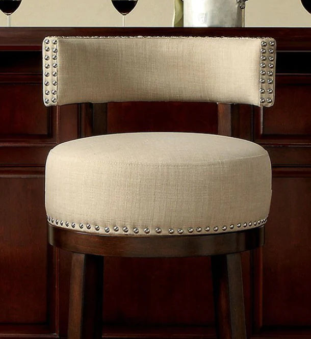 Accessorize your kitchen in a subtle yet luxurious way with these neutral-toned bar chairs. Supported on rich, dark wooden legs, the fabric padded seats and backrests provide a comfortable seating experience for you and your guests. Nailhead trim adds a hint of contemporary charm for a beautiful and timeless accent piece.