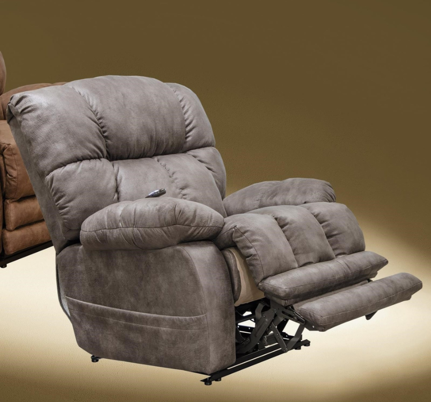 This oversized power lay flat recliner features faux leather fabric and an extended, extra long footrest. Power recline operates with a power wand control. Weight Capacity 400 lbs