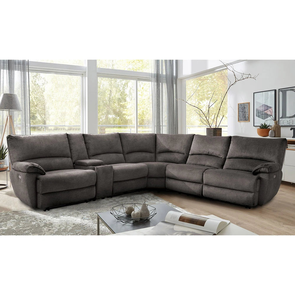 Enjoy ultimate relaxation with the power reclining footrests and pillow top arms of the expansive L-shaped sectional. With a comforting gray fabric upholstery, built-in storage console with cupholders and wireless charging, and a durable kiln-dried hardwood frame, this sectional combines relaxation and convenience seamlessly for your modern living space.