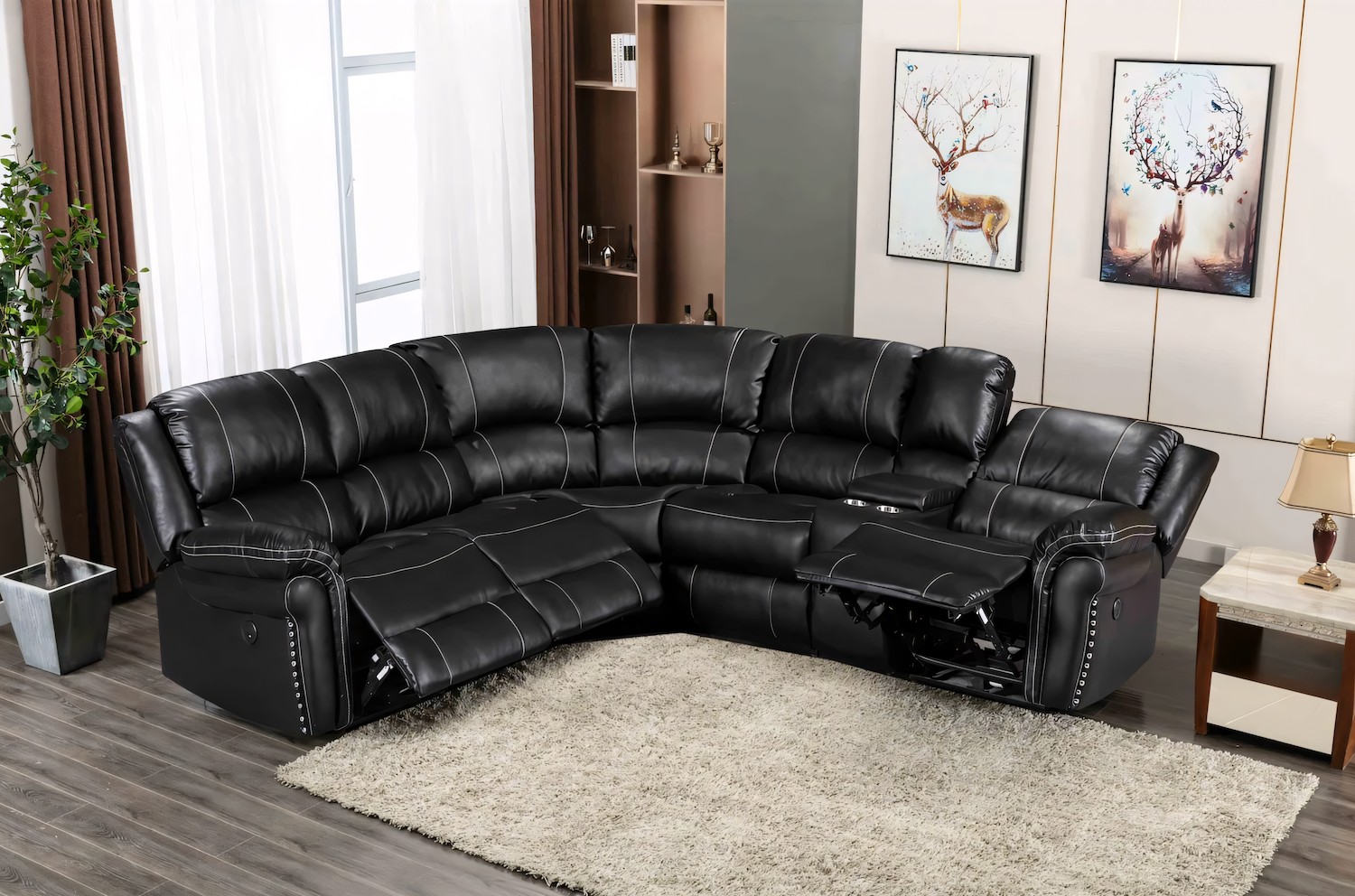 Fink Black Power Reclining Sectional with Stitching