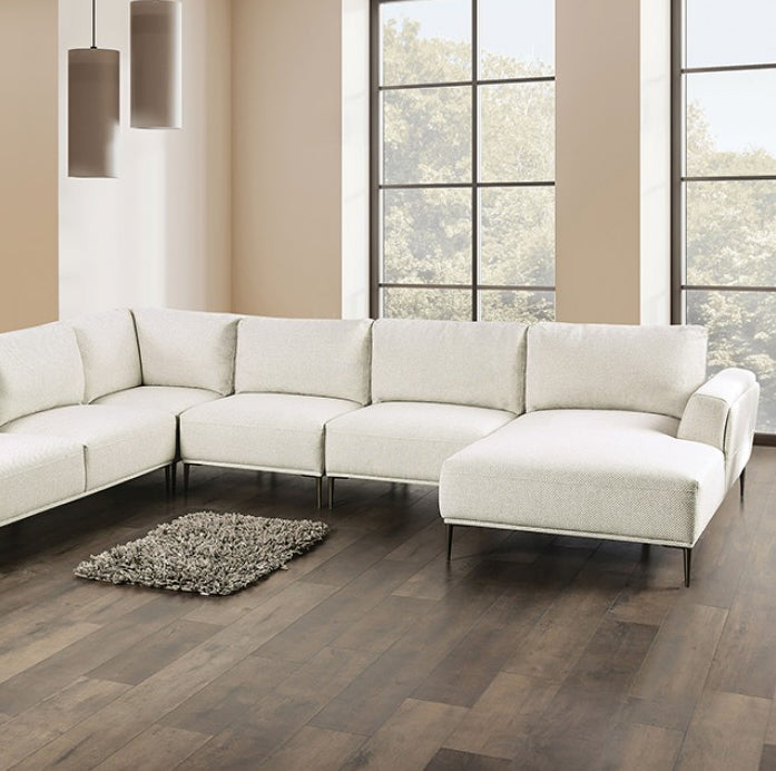 Gladbach 147" J-Shaped Sectional in Beige Chenille