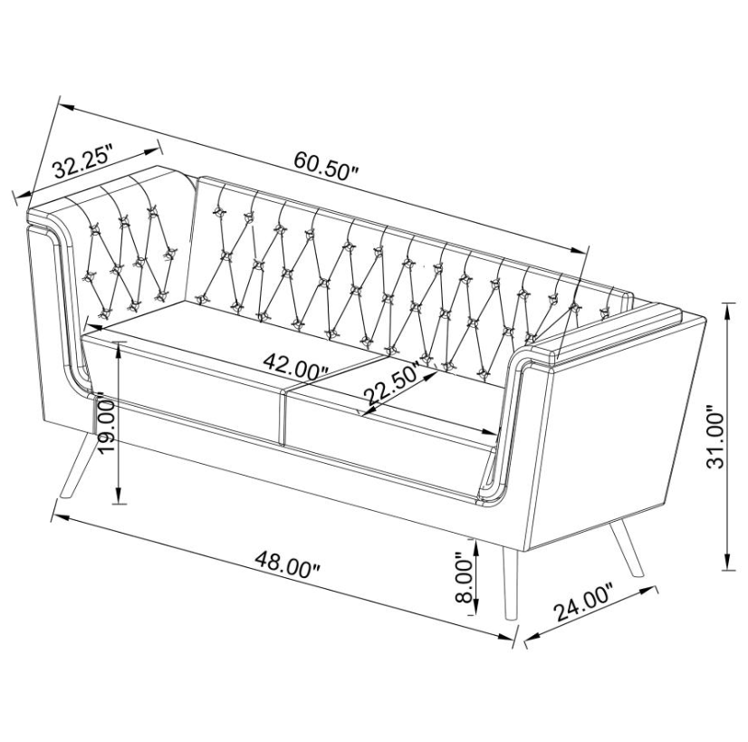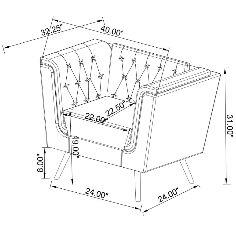 - Diamond button tufting adds texture to the seat back and inside of the arms