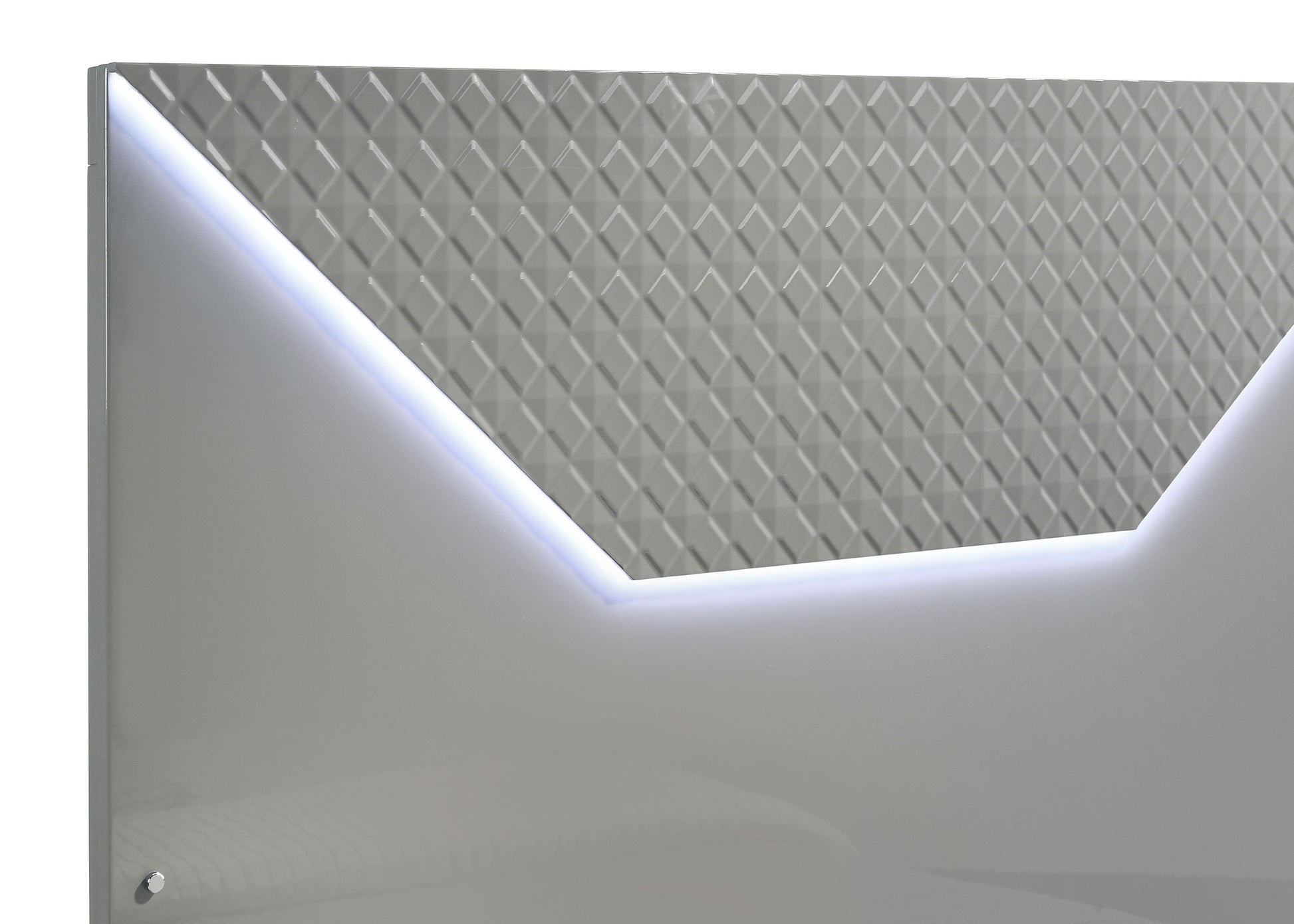 Ives Queen Panel Bed LED Headboard Grey High Gloss