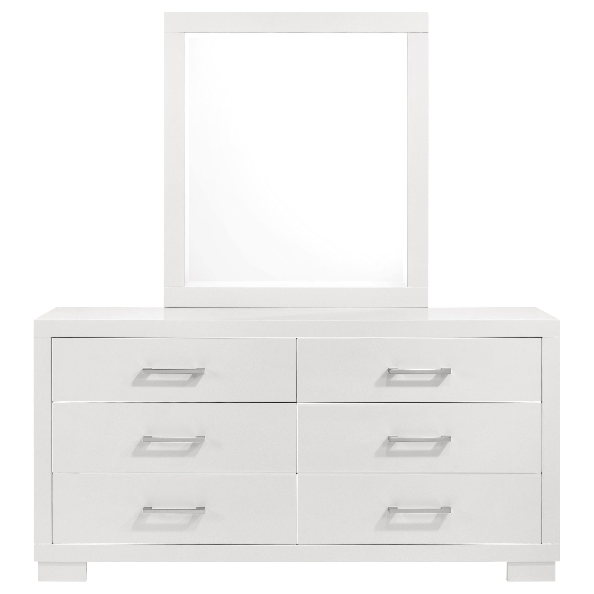 - Clean, white finish is ideal for a contemporary bedroom Silver-tone bar handles on drawers