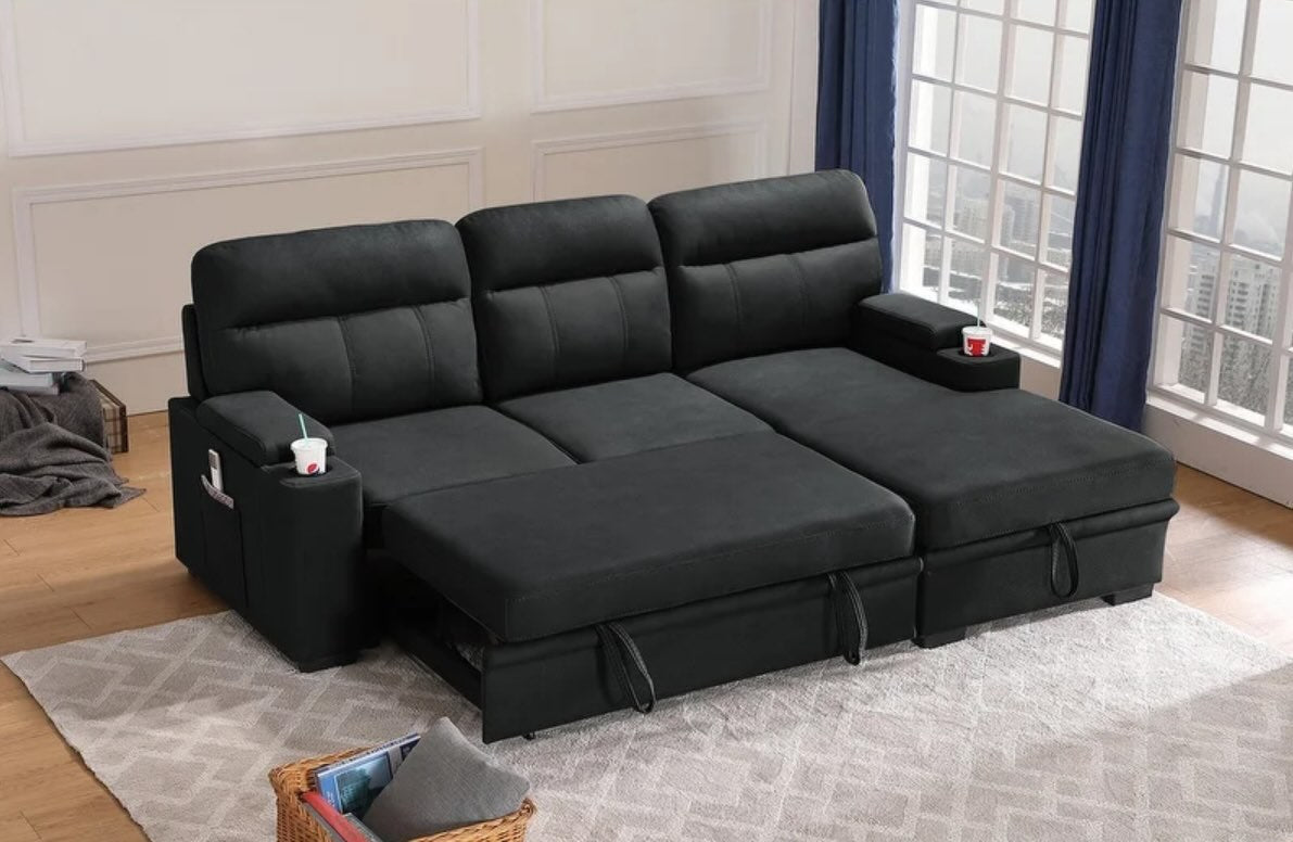Kaden Fabric Sleeper Sectional Sofa with Storage Chaise and Arms