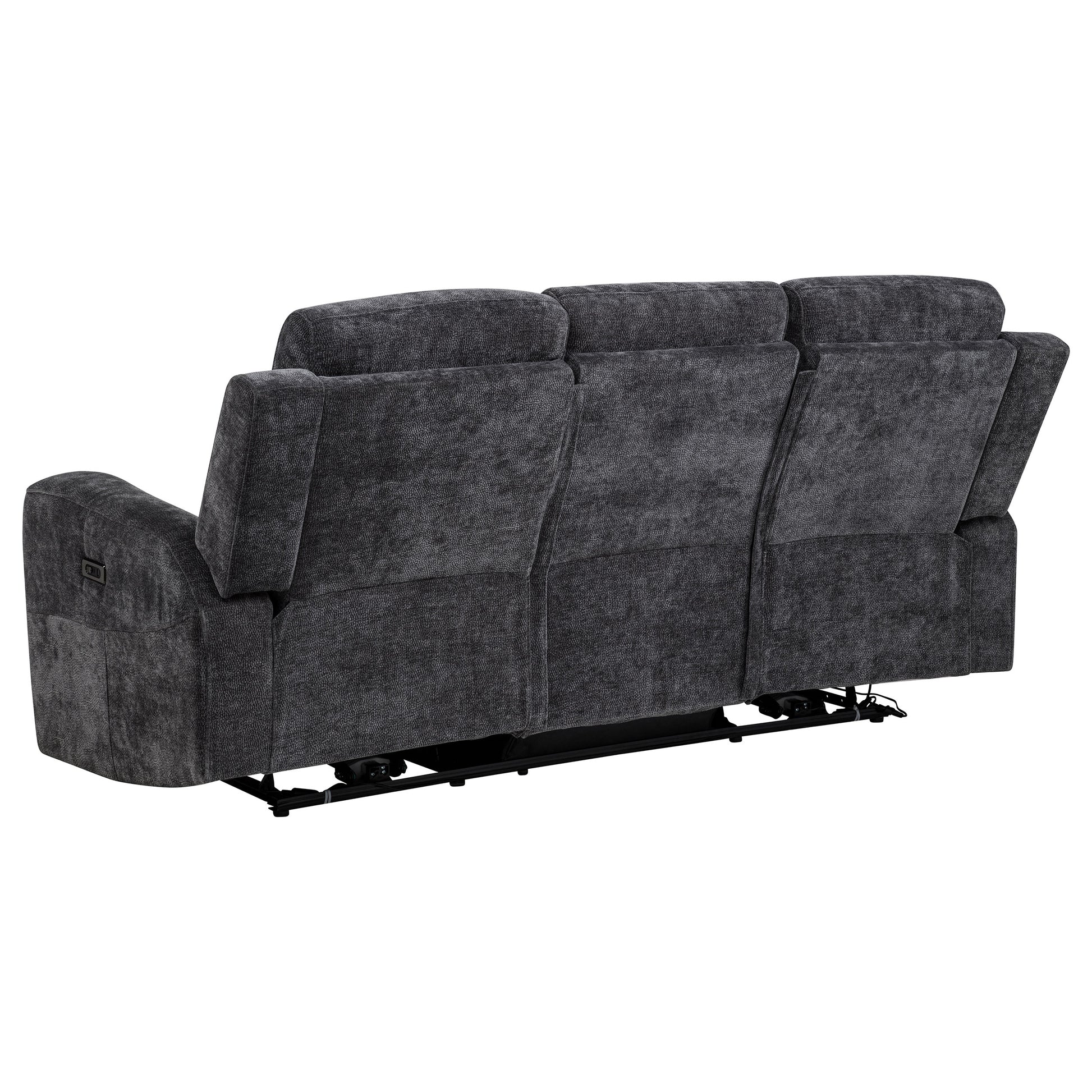 Wrap yourself in everyday comfort with the Kennett Dark Gray Chenille Power Reclining Sofa, where modern convenience meets refined transitional design. Upholstered in soft, woven chenille, this power sofa delivers plush support with smooth push-button reclining, making it ideal for movie nights, lounging, or daily relaxation. Padded headrests and generously cushioned seats provide lasting comfort, while a durable metal frame ensures long-term reliability.